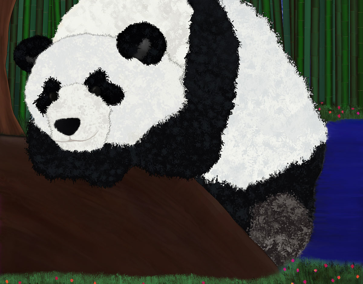 Panda Sitting by Bamboo