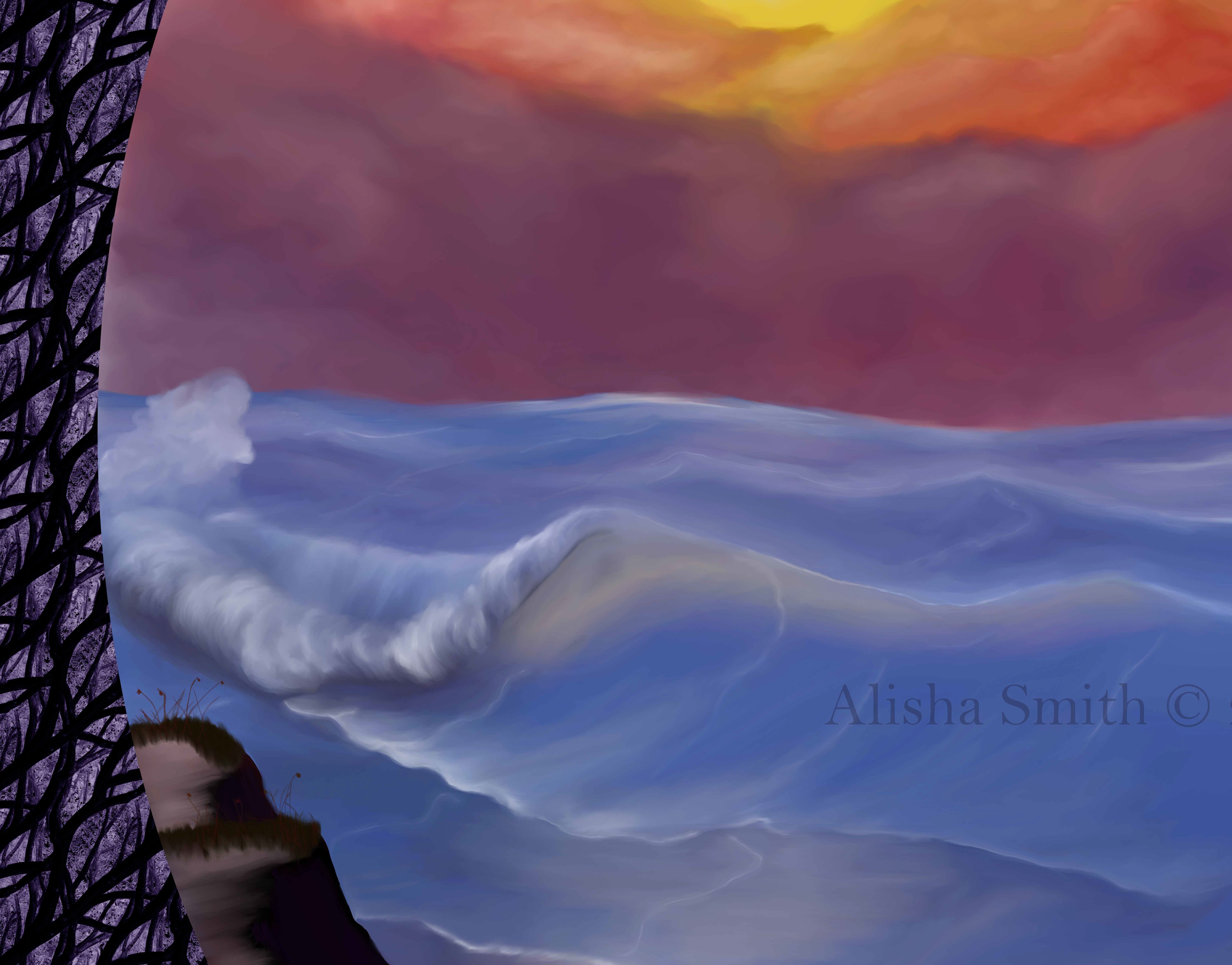 Bob Ross inspired piece, done using the tutorial 'Crimson Tide'. Love the dark with just a few hints of color to brighten it up. =)
